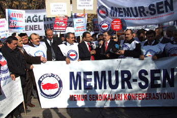 Toplu sözlesme talepleri kabul edilmezse, gelecek yil masaya oturmama karari aldiklarini hatirlatan Gündogdu, “120 sayfalik 2009 yili toplu görüsme taleplerinin sonuç bölümünde ‘2010 yilinda toplu sözlesme imzalamak istek ve kararligindayiz’ diyerek önceligimizi ortaya koyduk. Bugün de bu temel hedef ve kararligimizdan milim sasmis degiliz, kararliligimiz artarak devam etmektedir. Ancak, iktidar partisi uluslararasi sözlesmeleri dayanak göstererek kamu görevlilerine toplu sözlesme ve grev hakki tanimak yerine Avrupa Sosyal Sarti’nin 5 ve 6. maddelerine koydugu çekincelere dayanarak bu hakki vermekten kaçinmaktadir. Bu çekinceyi kaldiracak olan da iktidarin kendisidir. Memur-Sen olarak, söz konusu çekinceler kaldirilmadan da ILO’nun 51, 98 ve 151 sayili sözlesmelerine dayanarak kamu görevlilerine toplu sözlesme ve grev hakkinin verilebilecegine inaniyoruz. Hükümet, Avrupa Sosyal Sarti’nin 5 ve 6. maddesine konan çekincenin kaldirilmasinin sart oldugunda israrci ise, o zaman bu çekinceyi derhal kaldirsin ve kamu görevlilerinin özlemle bekledigi toplu sözlesme ve grev hakkini vererek memur açilimini da baslatsin. Bu açilimi, kamu görevlilerinin siyaset yasagini kaldirarak sürdürsünler. Aksi taktirde toplu sözlesme ve grev hakkimizi alincaya kadar eylemlerimizi sürdürecegimizi ve bir mesafe alinmamasi durumunda ise, 2010 toplu görüsme masasina oturmayacagimizi tekrar deklare ediyoruz” seklinde konustu.