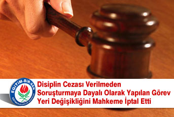 Bingöl Genç Yatili Ilkögretim Bölge Okulu’nda matematik ögretmeni olarak görev yapan üyemizin Bingöl Karliova Hacilar Ilkögretim Okulu’ na hizmet geregi sorusturma nedeniyle naklen atanmasina iliskin Bingöl Valiligi Il Milli Egitim Müdürlügü’nün 17.03.2010 tarih ve 3774 sayili isleminin iptali için açmis oldugumuz davada Mahkeme, dava konusu atama islemini iptal etti.