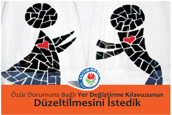 2011 Yili Ögretmenlerin Özür Durumuna Bagli Yer Degistirme Kilavuzunun “ Genel Hükümler” basligi altinda “Ögretmenlerden; Her ikisi de ögretmen olan eslerden “istege bagli yer degistirme döneminde, yer degistirme sartlarini tasidiklari halde, yer degistirmek için basvuruda bulunmayan es ile farkli illeri tercih ederek yer degistirmesi gerçeklesen ögretmenlerin esleri, 1 (bir) yil geçmedikçe, Es durumundan, yer degistirme istegi bulunamayacaktir.” hususu yer almaktadir. 2011 Iller arasi Istege Bagli Yer Degistirme islemlerinde sartlari tasimakla birlikte atanmak istedikleri illerde alanlarinda bos norm olmadigi için basvuru yapmayanlarin durumlarinin tekrar gözden geçirilerek basvurularinin kabul edilmesi, hususlarinda; Milli Egitim Bakanligi’ndan gereginin yapilmasini istedik.
