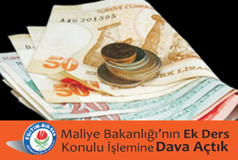 Milli Egitim Bakanligi (Personel Genel Müdürlügü) nün 07/07/2011 tarihli ve 48792 sayili islemi ile bu isleme dayanak teskil eden Maliye Bakanligi’nin 10.06.2011 tarih ve 7495 Sayili Ek Ders konulu isleminin öncelikle yürütmesinin durdurulmasi ve devaminda iptaline karar verilmesi talebiyle Danistay’ da dava açtik.