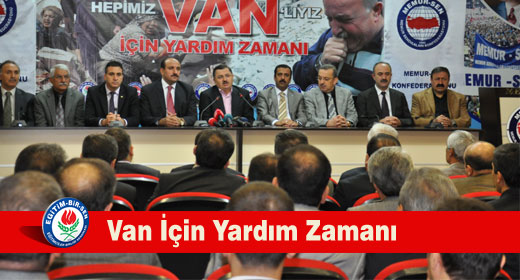 Egitim-Bir-Sen ve Memur-Sen Genel Baskani Ahmet Gündogdu, Van’da meydana gelen depremden zarar gören vatandaslarimiz için, ‘Van için yardim zamani’ sloganiyla yardim kampanyasi düzenlediklerini söyledi.