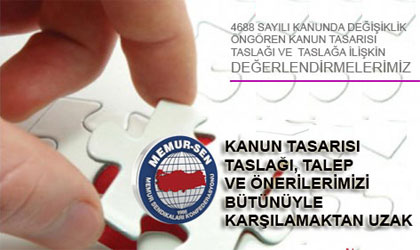 Bu süreçleri takip edenler, Memur-Sen’in kamu görevlilerinin toplu sözlesme hakkini fiilen kullanmalarina iliskin ikincil mevzuat düzenlemeleriyle ilgili talep ve önerilerine de vakiftirlar. Bu çerçevede, Bakanlar Kurulu’yla es zamanli olarak kamuoyunun da bilgisine sunulan Kanun Tasarisi Taslagi’nin, toplu sözlesmeyle ilgili hükümleri dahil olmak üzere kamuoyuna defalarca deklare ettigimiz talep ve önerilerin bütününü karsilamadigini söylemek yanlis olmayacaktir.
