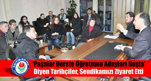 Atamasi Yapilmayan Tarih Ögretmenleri Platformu, Milli Güvenlik dersinin kendilerine verilmesi için Milli Egitim Bakanligi önünde yapacaklari eylem öncesi sendikamizi ziyaret ederek Genel Sekreterimiz