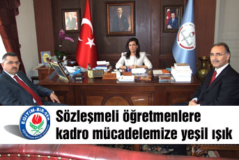 Öteden beri ögretmenin vekili, ücretlisi, sözlesmelisinin olmayacagini söylediklerini ifade eden Gündogdu, “Ögretmen, egitim isinin lokomotifidir. Bu isi kadrolu olarak yapmasi gerekir. Mücadelemizde dile getirdigimiz sözlesmelilerin kadroya geçirilmesi talebimiz, hem eski Bakanimizin hem de yeni Bakanimizin sicak yaklasmalarina ragmen, diger Bakanliklar boyutu da dikkate alinarak geciktirilmisti. Simdi bunun da kademeli olarak geçisine yönelik umudun çok daha arttigi ve çözümün çok daha yakin oldugu bir görüsmeyi gerçeklestirdik. Sayin Bakan, bu konuyu daha fazla önemseyerek hem Bakanlar Kurulu’na hem de Basbakan Sayin Recep Tayyip Erdogan’a tasiyacagini ifade etti. Bu girisimler sonucu, olumlu beklentimiz yüzde 100 artmistir” dedi.