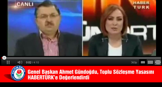 Egitim-Bir-Sen ve Memur-Sen Genel Baskani Ahmet Gündogdu, HABERTÜRK TV’de yayinlanan Gün Ortasi Programina katildi. Gündogdu programda, toplu sözlesme hakkinin 12 Eylül referandumu ile verildigi halde yasanin 15 aydir çikmadigini, buna karsin sike yasasinin bir ayda iki kez çiktigini belirterek, “Gelinen noktadan memnun degiliz“ dedi.