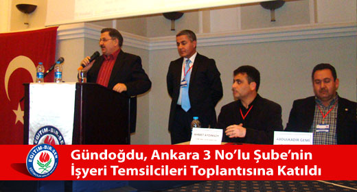 Ankara 3 No’lu Subemiz, 1. Isyeri Temsilcileri Istisare Toplantisi’ni, Egitim-Bir-Sen ve Memur-Sen Genel Baskani Ahmet Gündogdu’nun katilimiyla Kizilcahamam Asya Termal Tesisleri’nde gerçeklestirdi.