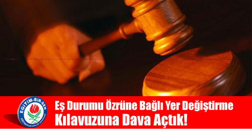 Gerek Ögretmenlerin Es Durumu Özrüne Bagli Yer Degistirme Kilavuzu yayimlanmadan önce gerekse kilavuzun yayimlanmasindan sonra özür durumuna bagli yer degisikligi konusunda yasanabilecek magduriyetleri ortaya koymak suretiyle Bakanliga müracaatlarda bulunarak, yapilmasi gerekenleri iletmistik. Ancak mücadelemize ragmen dikkat çektigimiz hususlarda bir gelisme olmamasi üzerine kilavuzun hukuka aykiri hükümlerinin iptali için Danistay’da yürütmenin durdurulmasi talepli dava açacagimizi açiklamistik.