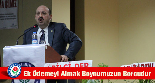 Ögretmenlerin, kamuda çalisan 2,5 milyon memur içerisinde maas skalasinda en düsük konuma yerlestigini kaydeden Bilgin, “Egitim-Bir-Sen olarak bunu kabul etmemiz mümkün degildir. Bu ülkede hiç kimsenin bunu kabul etmemizi beklemesi söz konusu olamaz. Ögretmenlerin çalisma sürelerini, tatilini kafaya takan zihniyete ve ögretmene ek ödemenin ülkeyi iflasa sürükleyecegini iddia edenlere bir çift sözüm var: Sekreterlerinin aldigi maasin yarisini bize çok görenler, bunun hesabini ne bu dünyada ne de öbür dünyada verebilir” seklinde konustu.