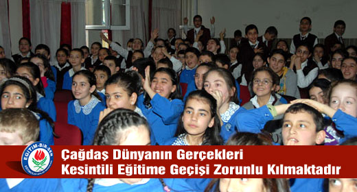 Çocuklarin sosyal, fiziksel ve fizyolojik gelisim süreçleri dikkate alindiginda 8. sinifa devam eden 14-15 yasindaki ögrenci ile 7 yasindaki ögrenciyi ayni zaman diliminde ayni koridora, ayni bahçeye, ayni tuvalete, ayni derslige mahkûm eden 8 yillik kesintisiz, zorunlu, çarpik bir yaklasim söz konusudur.