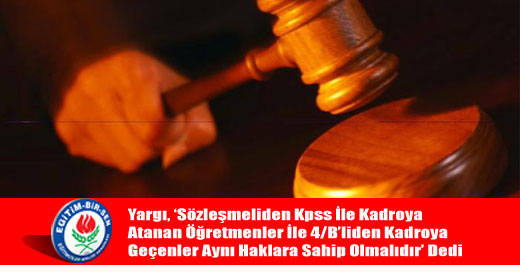 Dava kararinin devaminda ise söyle denildi. “Olayda ise, davali idarece aksi yönde bir iddiada bulunulmadigi da göz önünde bulunduruldugunda; 14.11.2008 tarihinde Sanliurfa Ili Saglik Ilkögretim Okulunda 657 sayili Kanunun 4/B maddesi kapsaminda sözlesmeli ögretmen olarak göreve baslayan ve kadrolu maddesinde öngörülen temel egitim ile hazirlayici egitime tabi tutuldugu anlasilan ve davali idareye basvuruda bulundugu 29.06.2011 tarih itibariyle bir yillik adaylik süresini tamamladigi açik olan davacinin, 632 sayili Kanun Hükmünde Kararname kapsaminda kadrolu ögretmenlige atanmamis olsa bile, 657 sayili Kanunun 4/B maddesi kapsaminda sözlesmeli statüde geçirdigi hizmet sürelerinin, ayni yasanin 36. maddesinin Ortak Hükümler basligi altinda yer alan C/6 bendi hükmü geregi kazanilmis hak, aylik derece ve sürelerinin de göz önünde bulundurularak anilan yasanin 54 ile 58. maddeleri çerçevesinde adaylik süresine iliskin bir degerlendirme yapilmasi, basarili oldugunun anlasilmasi halinde asli memurluga atanmasi ve buna bagli olarak mevzuatla taninan diger haklardan (özür grubuna bagli il içi veya il disi atama vs.) yararlanmasinin saglanmasi gerekirken, adi geçen kisinin basvurusunun, 632 Sayili Kanun Hükmünde Kararname ile kadroya geçmediginden bahisle reddi yönünde tesis edilen dava konusu islemde hukuka uyarlik görülmemistir”