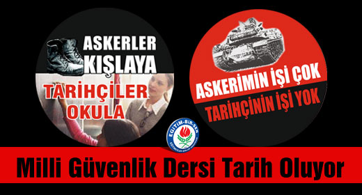 Egitimin, pedagojik formasyon gerektiren bir meslek oldugunu, rahat-hazirol-dikkat komutlari siniflardan yükselirken, egitimin sivil oldugundan söz edilemeyecegini her platformda seslendirdik. “Komutanlar, okullarda degil, asil görev yerleri olan kisla ve cephede islerini yapmalidir. Atamasi yapilmayan tarih ögretmenleri bosta gezerken, içerigini en iyi tarihçilerin bildigi dersin komutanlar tarafindan doldurulmasini anlamak mümkün degildir. Okullarimiz vesayetin degil, bilimsel çalismanin, özgür düsüncenin ve sivil reflekslerin yerleri olmalidir” dedik ve egitim ortamlarinin demokratiklesmesi, egitim programlarinin vesayeti mesrulastiran ögretilerden arindirilmasi konusunda genis toplum kesimlerinin ortak talebini Egitim-Bir-Sen olarak dile getirdik ve talebimiz yerine gelinceye kadar da dile getirmeye devam edecegimizi deklare ettik.
