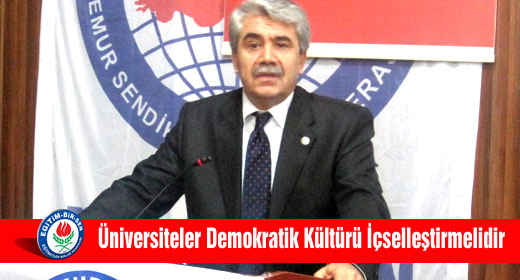 Genel Egitim ve Sosyal Isler Sekreterimiz Teyfik Yagci, üniversitelerde seçimin demokratik ve çogulcu bir anlayisla tüm personelin katilimina imkan saglayacak sekilde yapilmasi gerektigini ifade ederek, “Üniversite disiplin kurullari, senato ve bütün karar süreçlerinde sendika temsilcileri bulunmalidir. Üniversiteler paydas kuruluslarla birlikte çalismayi özümsemeli ve demokratik kültürü içsellestirmelidir” dedi.