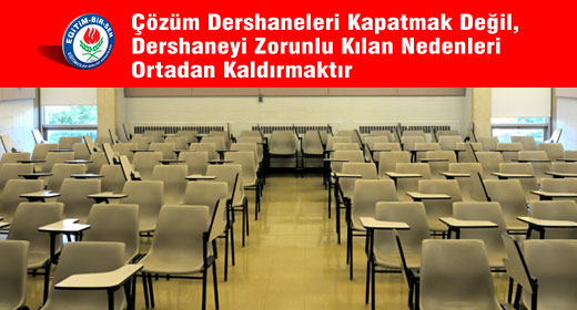 Egitim-Bir-Sen, dershanelerin kapatilmasina odaklanmak yerine dershanecilige sebep olan faktörlerin ortadan kaldirilmasinin daha saglikli olacagina inanmaktadir. Bir üst ögretim kurumuna seçme ve yerlestirmeye dayanan mevcut sistem, dershanelere gitmeyi zorunlu hale getirmektedir. Bu açidan bakildiginda üniversiteye giriste karsimiza çikan tablo ürkütücü ve dershanelerinde varolus sebebidir. 2011 yili için üniversitelere yönelen ve sinava basvuran aday sayisi 1 milyon 759 bin 998 iken, yerlesen ögrenci sayisi 789 bin 167’dir. Önceki yillar incelendiginde bu sayinin her yil artarak devam ettigi görülmektedir. Gelinen nokta itibariyle arz, talebi karsilayamamaktadir. Bunun anlami sudur; her yil yaklasik 1 milyon 800 bin talebin yaklasik 700-800 bin’i karsilanmakta, 1 milyon gencin ise ya yüksek ögretim hayali ya son bulmakta ya da bir yil ertelenmektedir.