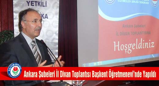 Ankara subeleri il divan toplantisi, Genel Sekreterimiz Ahmet Özer, Genel Basin Yayin Sekreterimiz Ali Yalçin, Genel Egitim ve Sosyal Isler Sekreterimiz Teyfik Yagci’nin katilimiyla Baskent Ögretmenevi’nde gerçeklestirildi.