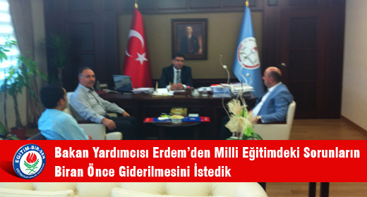 Genel Sekreterimiz Ahmet Özer, Genel Teskilatlanma Sekreterimiz Murat Bilgin, Genel Mevzuat ve Toplu Sözlesme Sekreterimiz Ramazan Çakirci, Milli Egitim Bakanligi Bakan Yardimcisi Orhan Erdem’e ziyarette bulundu.