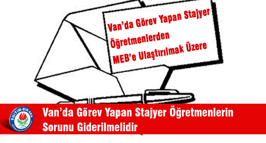Sendika olarak, Milli Egitim Bakanligi’ndan, Van’da görev yapan stajyer ögretmenlerin uygulama egitimlerini 29 Haziran’da tamamladiklarina dair bir düzenleme yapmasini ve mektuplarina olumlu cevap vermesini bekliyoruz.