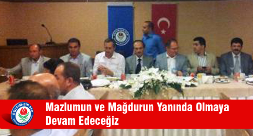 Genel Mali Sekreterimiz Esat Tektas, haklinin ve mazlumun yaninda, haksizligin ve zalimligin karsisinda olmayi kendilerine siar edindiklerini belirterek “Mazlumun ve magdurun yaninda olmaya devam edecegiz” dedi.