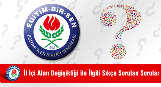 Sendikamiz mevzuat birimince il içi alan degisikligiyle ilgili sikça sorulan sorulara, Talim ve Terbiye Kurulu (TTK) kararlari ve mütalaasi ile Il Içi Alan Degisikligi Kilavuzu dogrultusunda cevap verilmistir. Bununla birlikte, sendikamiza iletilen alan degisikligi ile ilgili sorunlarin çözümü ve taleplerin karsilanmasi için Bakanlik nezdinde çalismalarimiz devam etmektedir. Baska sorular eklendikçe sikça sorulan sorular güncellenecektir.