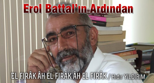 Ölüm bizim muhitimize de ugradi. Günahlarina kefaret olmasini diledigimiz istirapli bir hastalik sürecinin ardindan arkadasimiz, dostumuz, hocamiz Erol Battal’i genç yasta dâr-i bekâya ugurladik. 48 yilin birikiminin zihninde demlendigi ve esere dönüsmeyi bekledigi, tecrübenin kemale erdigi ve eyleme dökülmeyi bekledigi bir çaginda 1,5 yil hastane odalarinda siddetli acilarla seyreden menhus hastalik onu bizden kopardi. ‘Sirtimda bir agri var’ diyerek doktora gittigi ilk günden Büyükçekmece Gölü’nü gören, kendisinin de mutlaka begenecegi ebedi istirahatgâhina defnine kadar geçen 1,5 yillik süreç, çok yakin dostluk-arkadaslik, agabey-kardeslik iliskisi içerisinde bulunmus, sirlar-hatiralar paylasmis bir kimse olarak beni derinden etkiledi.