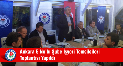 Ankara 5 No’lu Subemiz, isyeri temsilcileri toplantisini, Genel Basin Yayin Sekreterimiz Ali Yalçin ve Genel Egitim ve Sosyal Isler Sekreterimiz Teyfik Yagci’nin katilimiyla gerçeklestirdi.