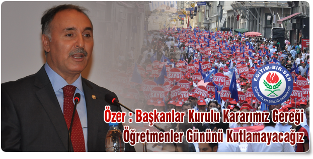 Ahmet Özer, 2012 Toplu Sözleşme süreci sonrası Kızılcahamam’da yaptıkları 23. Başkanlar Kurulu toplantısının sonuç bildirgesinde, “Öğretmenlik mesleğinin ekonomik ve mesleki itibarını hedef alan yaklaşımlar bertaraf edilmediği sürece 24 Kasım Öğretmenler Günü etkinlikleri yapılmamalı ve hiç kimse kutlama mesajı yayınlamamalıdır” kararı aldıklarını ve bunu kamuoyuyla paylaştıklarını hatırlattı. Özer, “Karar almamıza neden olan sebepler henüz ortadan kaldırılmadığı için Eğitim-Bir-Sen teşkilatı olarak aldığımız karar gereği 24 Kasım’a özel kutlama anlamı taşıyacak (yemekli toplantı, öğretmenler buluşması, sportif turnuvalar vb) herhangi bir faaliyet icra edilmeyecektir.” diye konuştu.