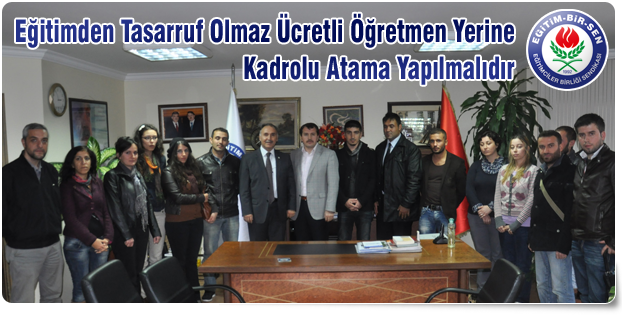 Atama bekleyen öğretmen adayları sendikamızı ziyaret ederek, Genel Sekreterimiz Ahmet Özer ve Genel Basın Yayın Sekreterimiz Ali Yalçın ile görüştü. Şubat ayında atama yapılması için sendikamızdan destek isteyen öğretmen adayları, “Ücretli öğretmenler derste biz ise stresteyiz” dedi.