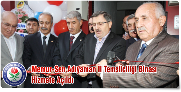 Memur-Sen Adıyaman İl Temsilciliği’nin yeni hizmet binası; Eğitim-Bir-Sen ve Memur-Sen Genel Başkanı Ahmet Gündoğdu, Belediye Başkanı Necip Büyükaslan, CHP Milletvekili Salih Fırat, Müftü Mehmet Ali Öztürkçü ve çok sayıda davetlinin katılımıyla açıldı.