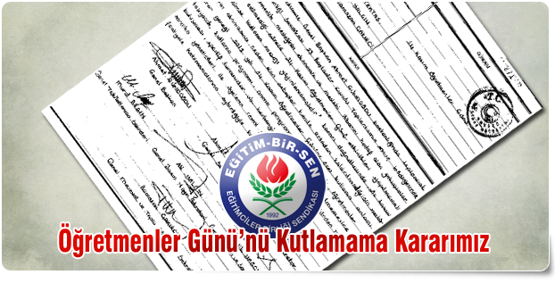 Genel Yönetim Kurulu, 16.11.2012 tarihinde yaptığı toplantıda; sendikamızın 23. Başkanlar Kurulu Toplantısı’nın sonuç bildirgesinde alınan, “Öğretmenlik mesleğinin ekonomik ve mesleki itibarını hedef alan yaklaşımlar bertaraf edilmediği sürece 24 Kasım Öğretmenler Günü etkinlikleri yapılmamalı ve hiç kimse kutlama mesajı yayınlamamalıdır” kararı doğrultusunda, söz konusu kararın alınmasına neden olan sebepler ortadan kaldırılmadığı için, 2012 yılı Öğretmenler Günü’ne özel kutlama anlamı taşıyacak herhangi bir faaliyetin yapılmamasına ve sendika yöneticileri ile üyelerin resmi ya da özel mahiyetteki bu türden hiçbir faaliyete katılmamasına oybirliğiyle karar verdi.