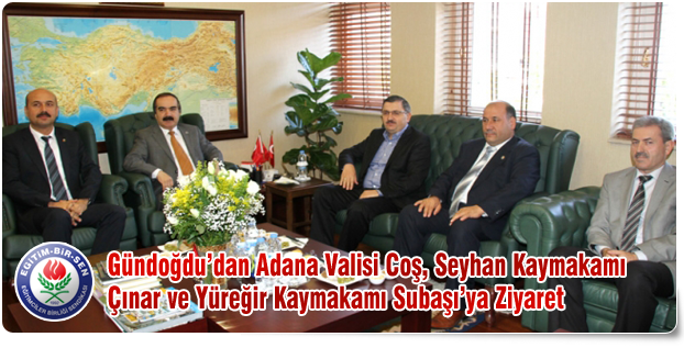 Eğitim-Bir-Sen ve Memur-Sen Genel Başkanı Ahmet Gündoğdu, Adana Valisi Hüseyin Avni Coş, Seyhan Kaymakamı Ahmet Çınar, Yüreğir Kaymakamı Turgut Subaşı’yı ziyaret etti.