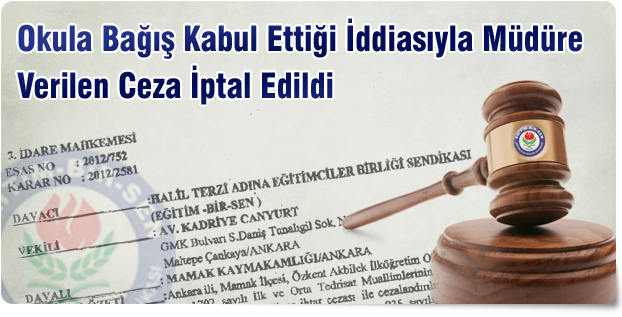 Ankara 7. İdare Mahkemesi, kararında, “…Olayda, dava dosyasında mevcut olan bilgi ve belgelerin birlikte irdelenmesinden; 2011/40 sayılı Genelge’nin yayımlanmasından sonra Okul-Aile Birliğince bağış alındığı/kabul edildiği anlaşılmakla birlikte, söz konusu bağışların niteliğinin makbuzlarda belirtilmediği görülmekte olup davalı idarece de bu bağışların kayıt kabul ya da diploma karşılığında alındığına ilişkin somut bilgi ve belge sunulamadığı gibi, söz konusu bağışların zorlama yöntemi ile olmadığının soruşturma raporunda açıkça belirtilmiş olması karşısında, 2011/40 sayılı Genelge’ye aykırı fiil işlenildiğinin kabulüne hukuken olanak bulunmamaktadır…” ifadelerine yer vermek suretiyle dava konusu cezanın iptaline karar verdi.
