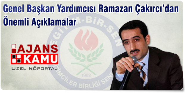 Toplu Sözleşme ve Mevzuattan sorumlu Eğitim-Bir-Sen Genel Başkan Yardımcısı Ramazan Çakırcı ile kamuya yönelik haber yapan AJANSKAMU.COM internet sitesinin yaptığı röportajda Ramazan Çakırcı, önemli açıklamalarda bulundu.