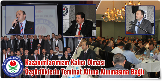 Genel Başkan Yardımcımız Ali Yalçın, Eğitim-Bir-Sen olarak toplamda 60’ı aşkın konuyu çözüme kavuşturarak, kazanıma dönüştürdüklerini ifade ederek, “Bunların kalıcı olması ülkenin genel ikliminin güçlenmesine, özgürlüklerin garanti altına alınmasına bağlı” dedi.