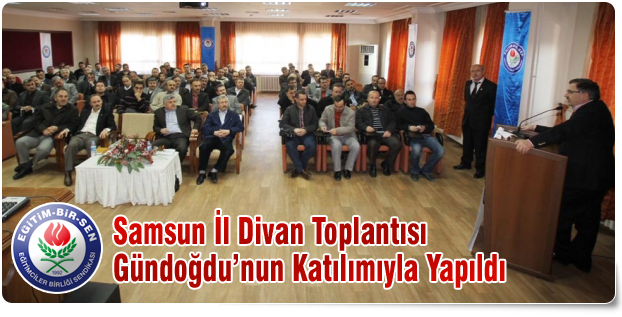 Samsun Şubemizin Genişletilmiş İl Divan Toplantısı, Eğitim-Bir-Sen ve Memur-Sen Genel Başkanı Ahmet Gündoğdu’nun katılımıyla Samsun Öğretmenevi’nde gerçekleştirildi. Burada konuşan Gündoğdu, toplu sözleşme sürecinin en mağdurunun öğretmenler olduğunu, yıllardır kendi çabalarıyla alınan ek ödemenin bu yıl verilmemesinin öğretmen ve öğretim elemanlarını mağdur ettiğini söyledi.