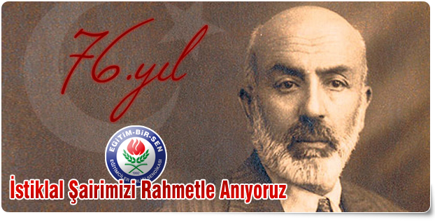 Eğitim-Bir-Sen olarak, İstiklal şairimizi ahrete irtihalinin 76. yıl dönümünde büyük bir saygı, rahmet, minnet ve şükranla anıyoruz.