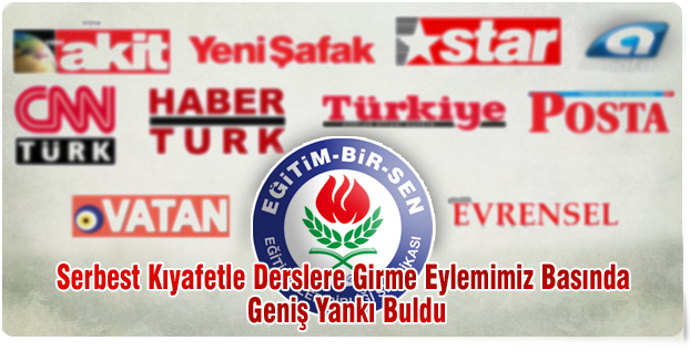 Gazete ve televizyonlar, serbest kıyafet eylemimizi ‘Bize giyinmeyi öğretmeyin, ‘Öğretmenler de sivil kıyafet istedi’, ‘Eğitim-Bir-Sen üyeleri serbest kıyafetle derse girdi’ Öğretmenler derslere serbest girdi’ gibi başlıklarla okuyucu ve izleyicilere ulaştırdı. Şube yöneticilerimiz ve üyelerimizin, derse girmeden önce belirledikleri okulların önünde biraraya gelerek basın açıklaması yaptıklarının belirtildiği haberlerde, ense tıraşı, sakal, favori, bıyık, tırnak uzunluğu ile ilgilenen, çalışanların kot ve benzeri pantolon giyemeyeceği hükmünü içeren, inancı gereği başını örtme ihtiyacı duyan ve tercihinden dolayı saygı duyulması gereken kadın çalışanlara başörtüsü yasağı getiren darbe döneminin ürünü çağdışı yönetmeliği tanımadığımızı haykırdığımız vurgulandı.