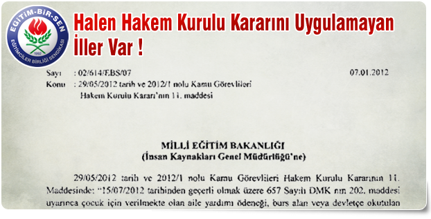 İllerde yapılan hukuka aykırı bu uygulamanın ortadan kaldırılması ve 29.05.2012 tarih ve 2012/1 No’lu Kamu Görevlileri Hakem Kurulu Kararı’nın 11. maddesine göre aile yardımlarının kamu görevlilerine ödenmesi gerekir.
