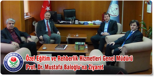 Genel Başkan Vekilimiz Ahmet Özer ile Genel Başkan Yardımcılarımız Teyfik Yağcı ve Ali Yalçın Özel Eğitim ve Rehberlik Hizmetleri Genel Müdürlüğü görevine yeni başlayan Prof. Dr. Mustafa Baloğlu’na hayırlı olsun ziyaretinde bulundu. Ziyarette konuşan Ahmet Özer, Milli Eğitim Bakanlığı bünyesindeki Özel Eğitim ve Rehberlik Hizmetleri Genel Müdürlüğünün kurum bünyesindeki en başta gelen birimlerden olduğunu kaydederek, Baloğlu’yla birlikte bu önemin daha da artacağına inandıklarını ifade etti.