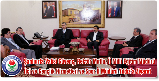 Eğitim-Bir-Sen ve Memur-Sen Genel Başkanı Ahmet Gündoğdu, Şanlıurfa Valisi Celalettin Güvenç, Harran Üniversitesi Rektörü Prof. Dr. Halil Mutlu, İl Milli Eğitim Müdürü Metin İlci ve Gençlik Hizmetleri ve Spor İl Müdürü Ertuğrul Yıldız’ı ziyaret etti.