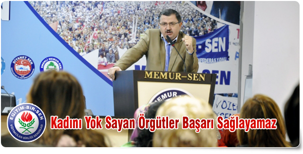 Eğitim-Bir-Sen ve Memur-Sen Genel Başkanı Ahmet Gündoğdu, kadınları yok sayan bir anlayışın başarıyı düşünmesinin beyhude bir bekleyiş olduğunu ifade ederek, “Erkekler, kadınlara en büyük desteği onlarla omuz omuza, yan yana yürüyerek verebilirler” dedi.