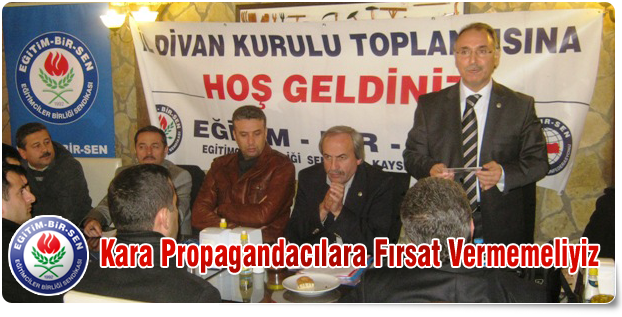 Genel Başkan Vekilimiz Ahmet Özer, yıllarca masaya oturup eğitim çalışanları adına kayda değer hiçbir başarı gösteremeyenlerin Eğitim-Bir-Sen’e karşı kara propagandaya başvurduklarını belirterek, “Teşkilatımız bize karşı kara propaganda yapanların geçmişini iyi bilir. Eğitim çalışanlarının gerçekleri bilme hakkını sağlamalıyız. Kara propagandanın arka planını deşifre etmeliyiz” dedi.