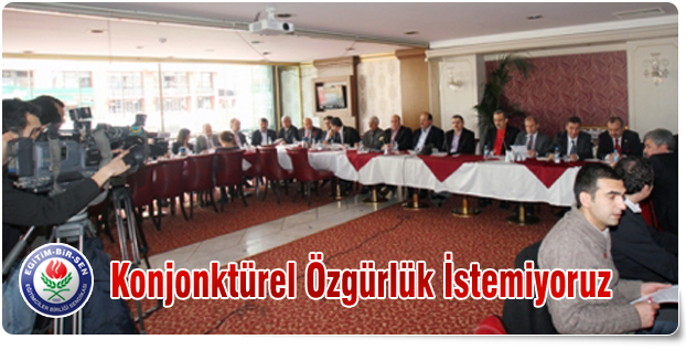Eğitim-Bir-Sen ve Memur-Sen Genel Başkanı Ahmet Gündoğdu, konjonktürel bir özgürlük istemediklerini, özgürlüklerin yasalarla teminat altına alınması gerektiğini söyledi. Ahmet Gündoğdu, ‘Özgürlük İçin 10 Milyon İmza’ kampanyası hakkında basın mensuplarıyla bir sohbet toplantısı düzenledi.