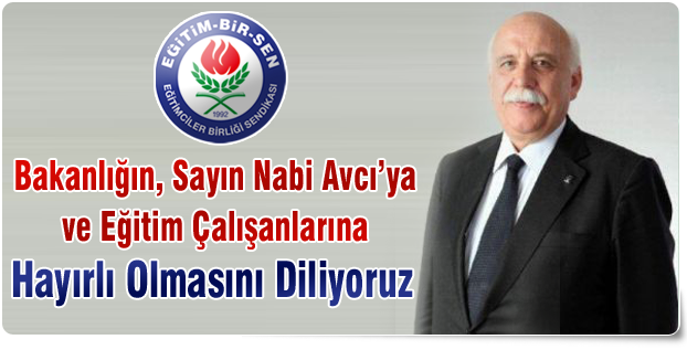 Eğitim-öğretim ve bilim hizmet kolunda genel yetkili olan Eğitim-Bir-Sen olarak, problemlerin çözümü için uzatılan her ele karşılık verip katkı sunacağımızı belirtiyor; Milli Eğitim eski Bakanı Sayın Ömer Dinçer’e, eğitim adına yaptığı özgürlük eksenli çalışmalarından dolayı teşekkür ediyor, Bakan Sayın Nabi Avcı’ya ise yeni görevinde başarılar diliyoruz.