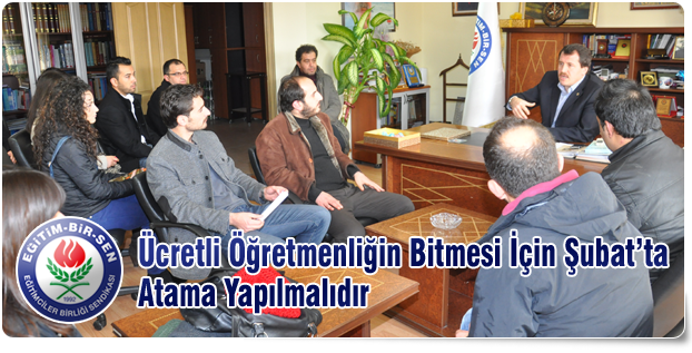 Ataması yapılmayan öğretmenler sendikamızı ziyaret ederek, Genel Başkan Yardımcımız Ali Yalçın ile görüştü. Yalçın, “Ücretli öğretmenlik uygulamasının sona ermesi için Şubat’ta 30 bin, Ağustos’ta ise 70 bin atama talebimizi sizler vasıtasıyla bir kez daha yineliyoruz” dedi.