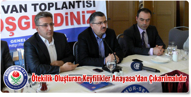 Eğitim-Bir-Sen ve Memur-Sen Genel Başkanı Ahmet Gündoğdu, keyfiliklerin anayasadan çıkarılması gerektiğini ifade ederek, “Devletin milletle barışmasını engelleyen anayasamızda, yasalarımızda mevzuat engellerimiz var. Keyfiliklerin Anayasa’dan çıkarılması lazım. Bu millet kategorize edilerek, ötekileştirilmiştir. ‘Benim vatanım diyen herkesin benim anayasam’ diyebileceği bir anayasa yapılmasını öneriyoruz” dedi.