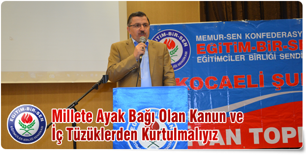 Eğitim-Bir-Sen Kocaeli Şubesi, il divan toplantısını Bilim ve Teknoloji Kulübü Konferans Salonu’nda yaptı. Eğitim-Bir-Sen Genel Başkan Yardımcısı Esat Tektaş’ın da katıldığı toplantıda konuşan Ahmet Gündoğdu, “Millete ayak bağı olan kanunlardan, iç tüzüklerden kurtulma mecburiyetimiz var” dedi.