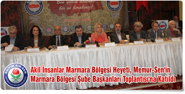 Deniz Ülke Arıboğan, Ahmet Gündoğdu, Hayrettin Karaman, Mithat Sancar, Hülya Koçyiğit, Ali Bayramoğlu, Yücel Sayman, Mustafa Armağan ve Levent Korkut'tan oluşan Akil İnsanlar Marmara Bölgesi Heyeti, Esenler Kültür Merkezi'nde, Memur-Sen tarafından düzenlenen ''Marmara Bölgesi Şube Başkanları Toplantısı'nda şube başkanlarıyla bir araya geldi.