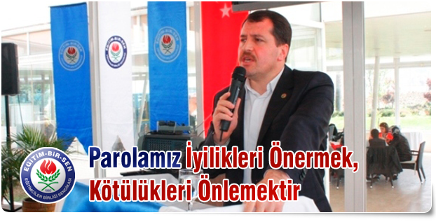 Eğitim-Bir-Sen Genel Başkan Yardımcısı Ali Yalçın, “Sendikacılıkta parolanız nedir diye soruyorlar. Parolamız iyilikleri önermek, kötülükleri önlemektir” dedi.