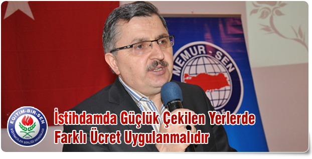 Eğitim-Bir-Sen ve Memur-Sen Genel Başkanı Ahmet Gündoğdu, istihdamda güçlük çekilen yerlerde farklı ücret uygulanması gerektiğini söyledi.
