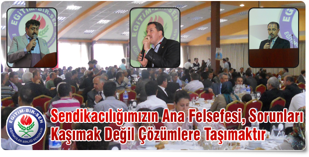 Eğitim-Bir-Sen Genel Başkan Yardımcısı Ali Yalçın, sendikacılığımızın ana felsefesinin, sorunları kaşımak değil, çözümlere taşımak olduğunu ifade ederek, “Bizimle diğer sendikalar arasındaki fark, ‘sorunlardan mı besleniyor yoksa çözümlerden mi’ sorusunun cevabında gizlidir. Şimdiye kadar eğitim hizmet kolunda çözüme kavuşturulmuş ne kadar konu varsa altında yerimiz, terimiz ve imzamız vardır” dedi.