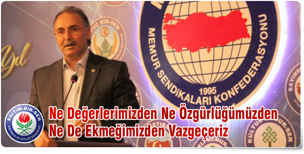 Memur-Sen Genel Başkan Vekili ve Toç Bir-Sen Genel Başkanı Günay Kaya, Memur-Sen Genel Başkan Yardımcısı ve Enerji Bir-Sen Genel Başkanı Hacı Bayram Tonbul, Memur-Sen Genel Başkan Yardımcısı ve Sağlık-Sen Genel Başkanı Metin Memiş, Memur-Sen Genel Başkan Yardımcısı Mehmet Emin Esen, Memur-Sen Kadın Komisyonu Başkanı Berrin Sevil Kazancı ve Genç-Memur-Sen Genel Başkanı Eyüp Beyhan’ın birer konuşma yaptığı toplantıda söz alan Eğitim-Bir-Sen Genel Başkan Vekili Ahmet Özer, 250 bine yaklaşan üye sayısıyla Türkiye’nin en büyük eğitim sendikası olduklarını ifade ederek, “Kurucu Genel Başkanımız Mehmet Akif İnan başta olmak üzere emeği geçen herkese teşekkür ediyorum. Ahirete irtihal edenlere rahmet diliyorum. Biz medeniyet değerlerimizi temel alarak sendikacılık yapıyor; özgürlüğümüzü ve ekmeğimizi kazanmanın mücadelesini veriyoruz. Ne medeniyet değerlerimizden ne özgürlüğümüzden ne de ekmeğimizden vazgeçeriz” dedi.